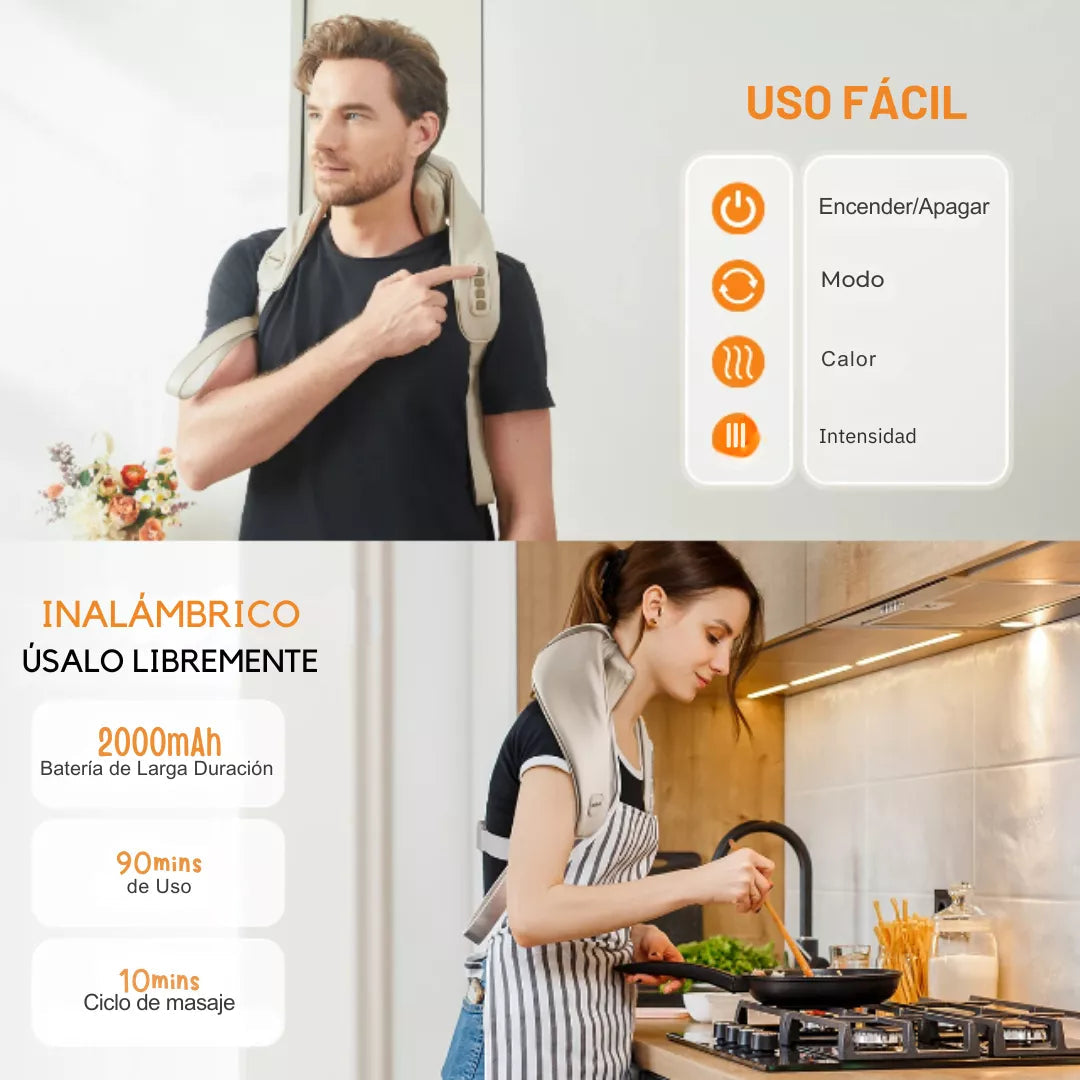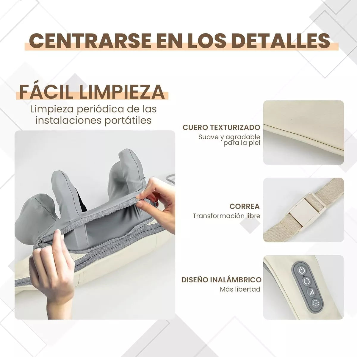 Diseño de Vanguardia: Con un diseño original que ofrece efectos de masajede amasado y pellizco, este masajeador está diseñado para masajear profundamente el cuello y espalda